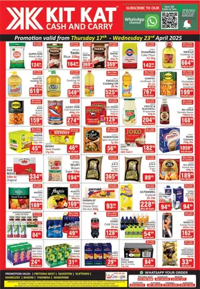 Kit Kat Cash & Carry is your one-stop store for a comprehensive selection of products ranging from food products, toiletries such as cleaning items, skin & hair care to name a few. The group also features Kit Kat Build Mart Silverton in South Africa, where you can get a variety of building products like cement, and other materials to aid your building projects. See the Build Mart catalogue for specials on products and to query about delivery you can simply contact directly with contact details on their website. Kit Kat Cash & carry stocks a variety of quality brands like Koo, All Gold, Bakers, Pampers, Sharp, KIC and lots more. Kit Kat Cash & Carry branches South Africa are located in Kliptown, Silverton and Pretoria. See the Kit Kat Cash & Carry Catalogue for promotional specials.
